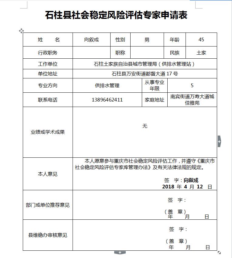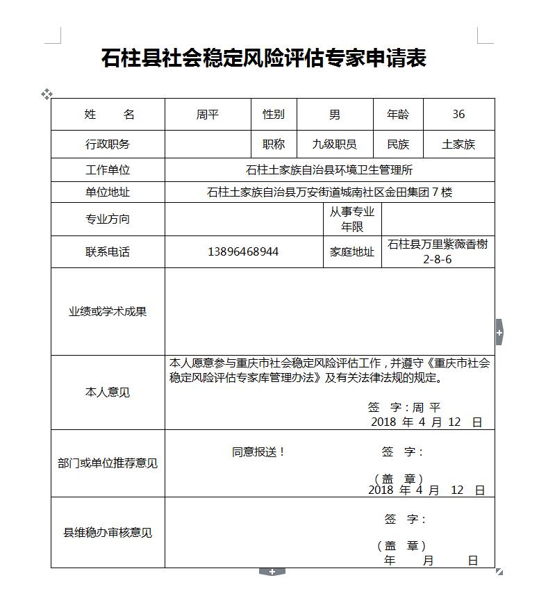 石柱县社会稳定风险评估专家申请公示