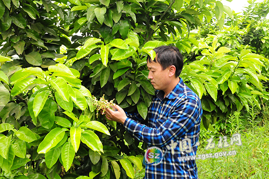 ????“我粗略数了一下,有的柚树挂了上百个果,成熟后每个按2斤计算,一株柚树则可产果200斤左右……”基地负责人谭明学忙着查看柚树挂果情况,一边向记者介绍返乡创业的心路历程。