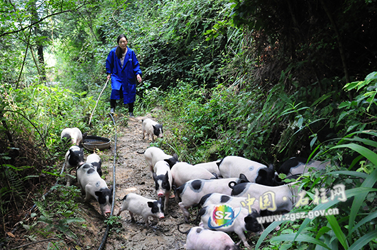 ????料理好仔猪,罗华兰便迫不及待赶着数十头巴马香猪往自家的山林地而去。进入林间,有的小猪便津津有味吃起杂草,有的小猪旁若无人跑到溪沟边喝起水来。